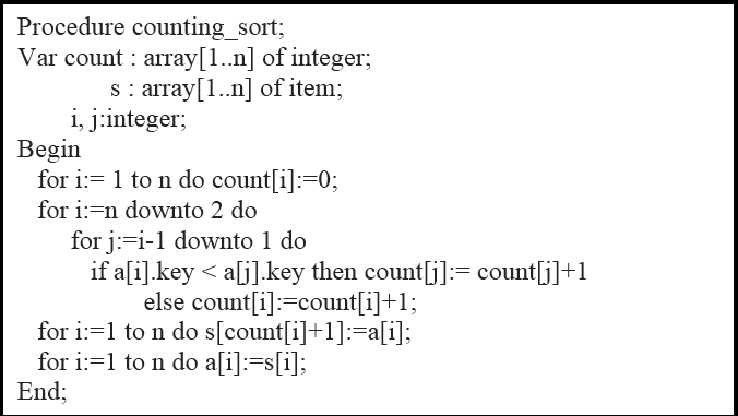 này là đếm phần tử có khóa nhỏ hơn hay bằng khóa của phần tử a[i]. Nếu có j phần